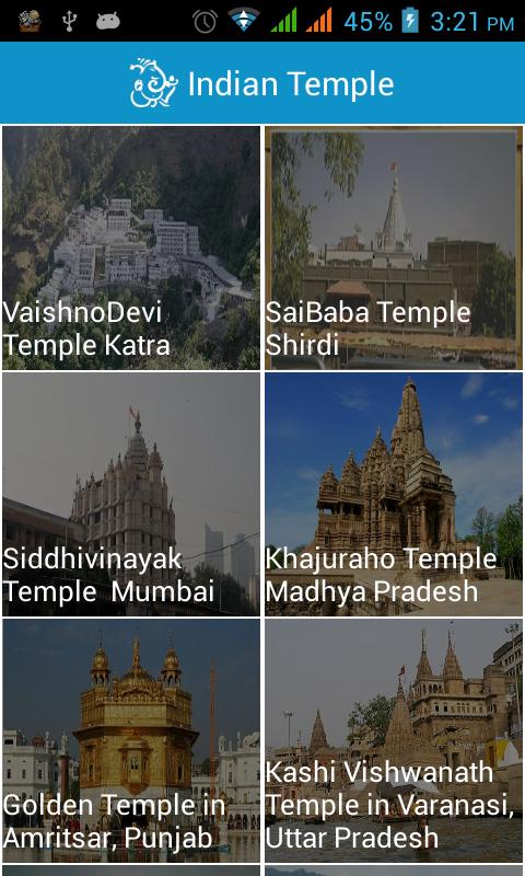 * This app show VaishnoDevi, SaiBaba, Siddhivinayak, khajuraho, kashiVishwanath,Golden Temple,