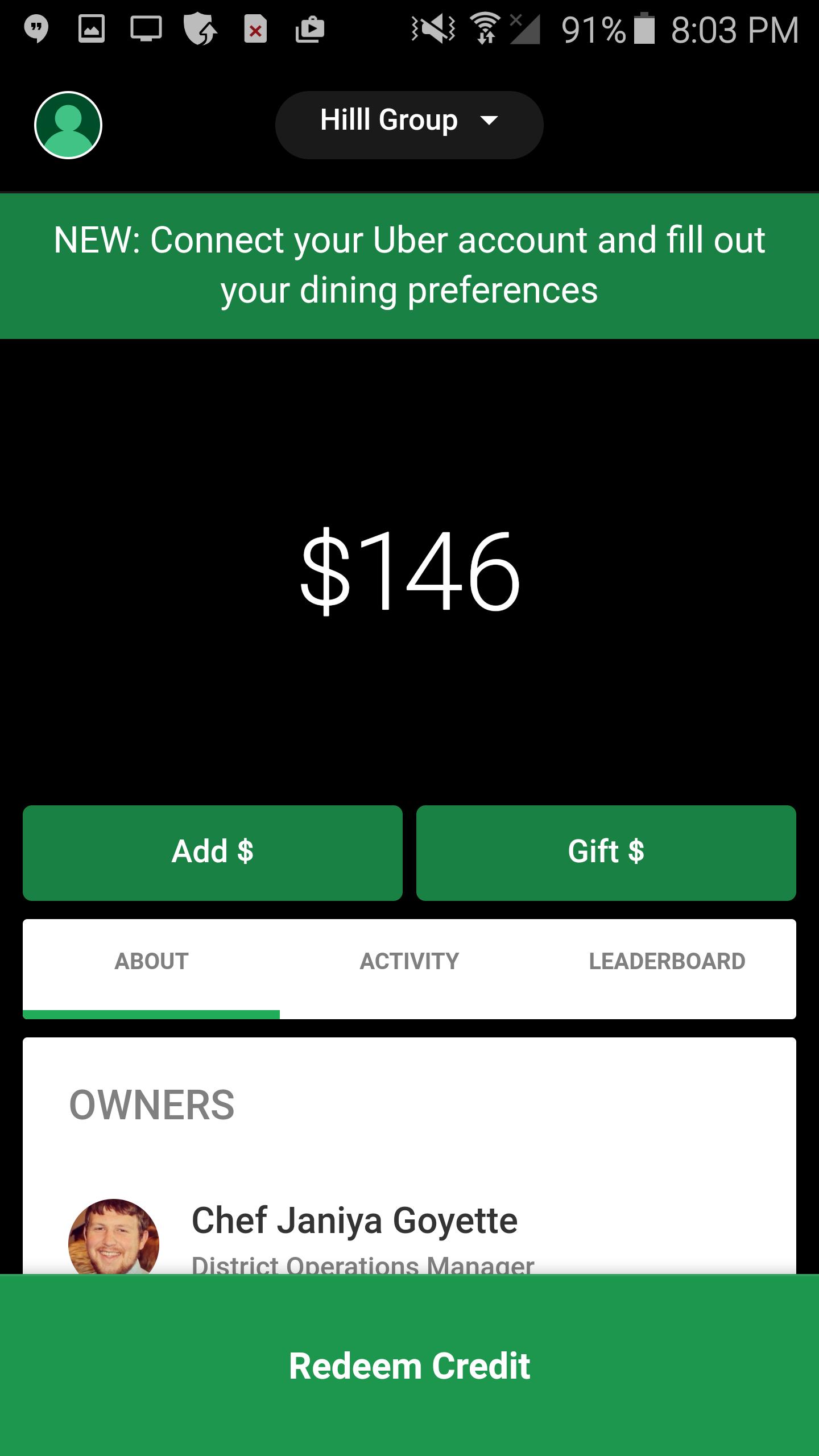 See how much credit you have to use in your favorite restaurant. Will it be a champagne popping night or will the happy hour menu be your new best friend?