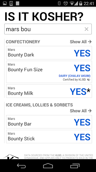 Official search app for the KLBD kosher product list.