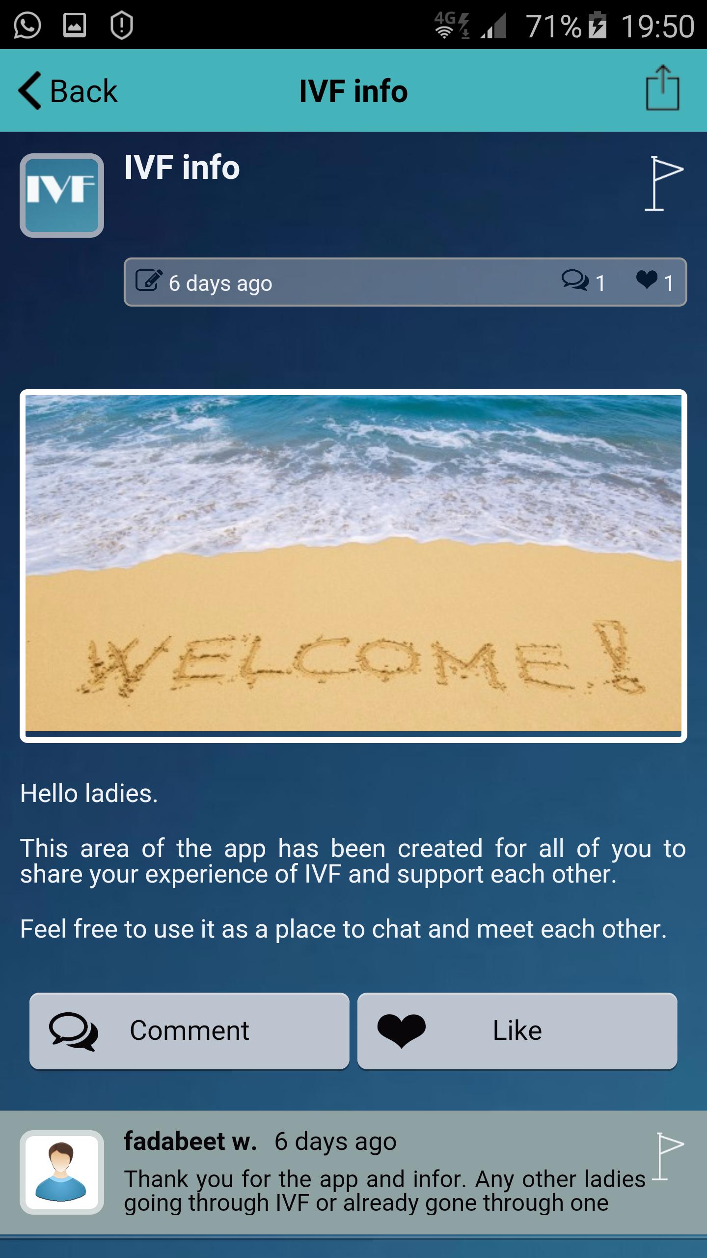 IVF info is an information app that gives users full information about IVF treatment. It also allows people going through IVF to discuss their treatment and share their experience.