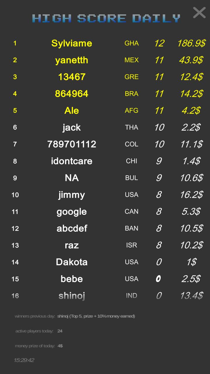 特に、誰もが高いスコアを持っているため、毎日トップ5を提供しています。彼らはアクティブな数のプレイヤーに基づいて大金を得るでしょう。