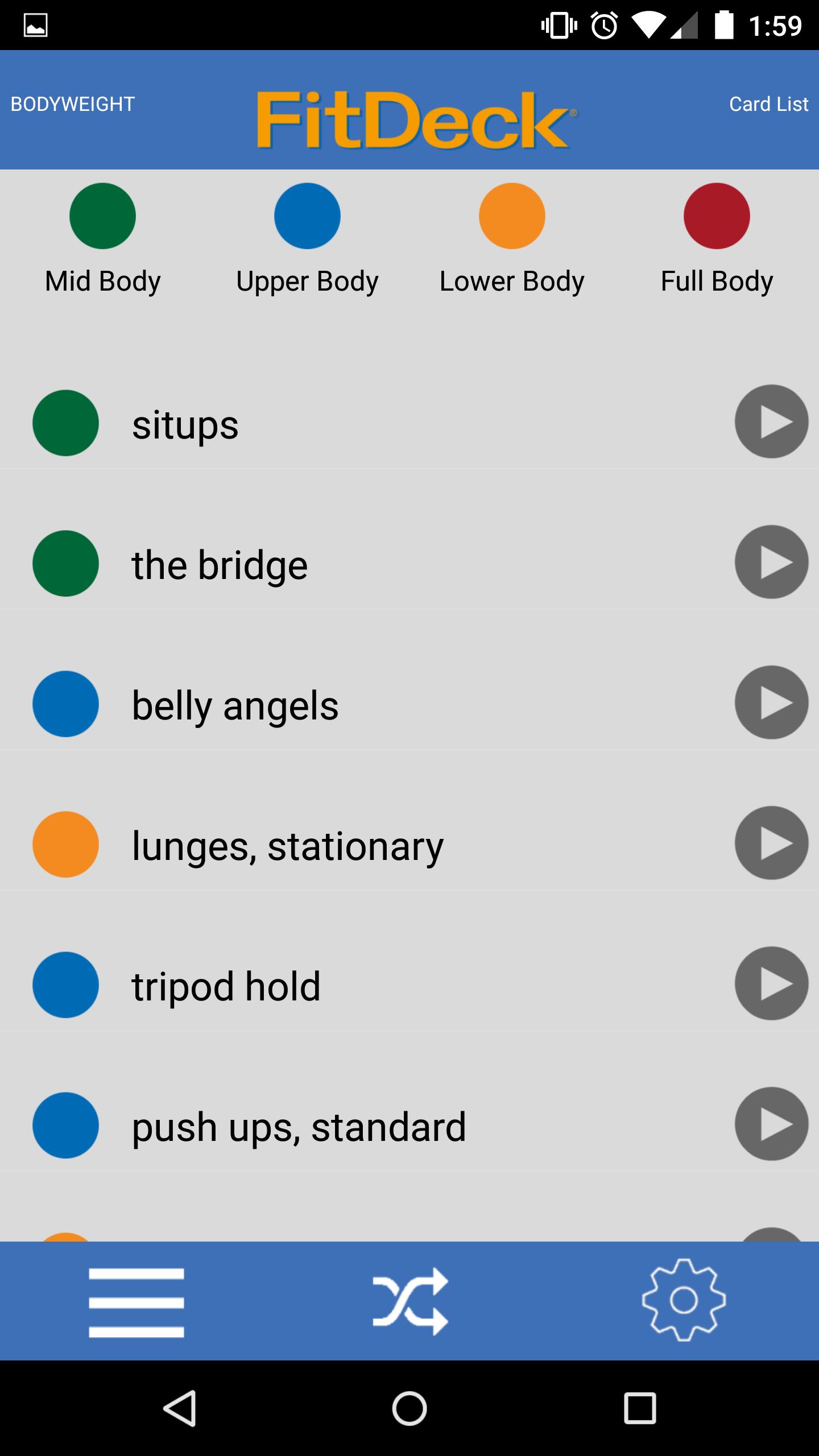 予期しない組み合わせ、シーケンス、および強度レベルで何千ものルーチンを作成するためのシャッフルカード。