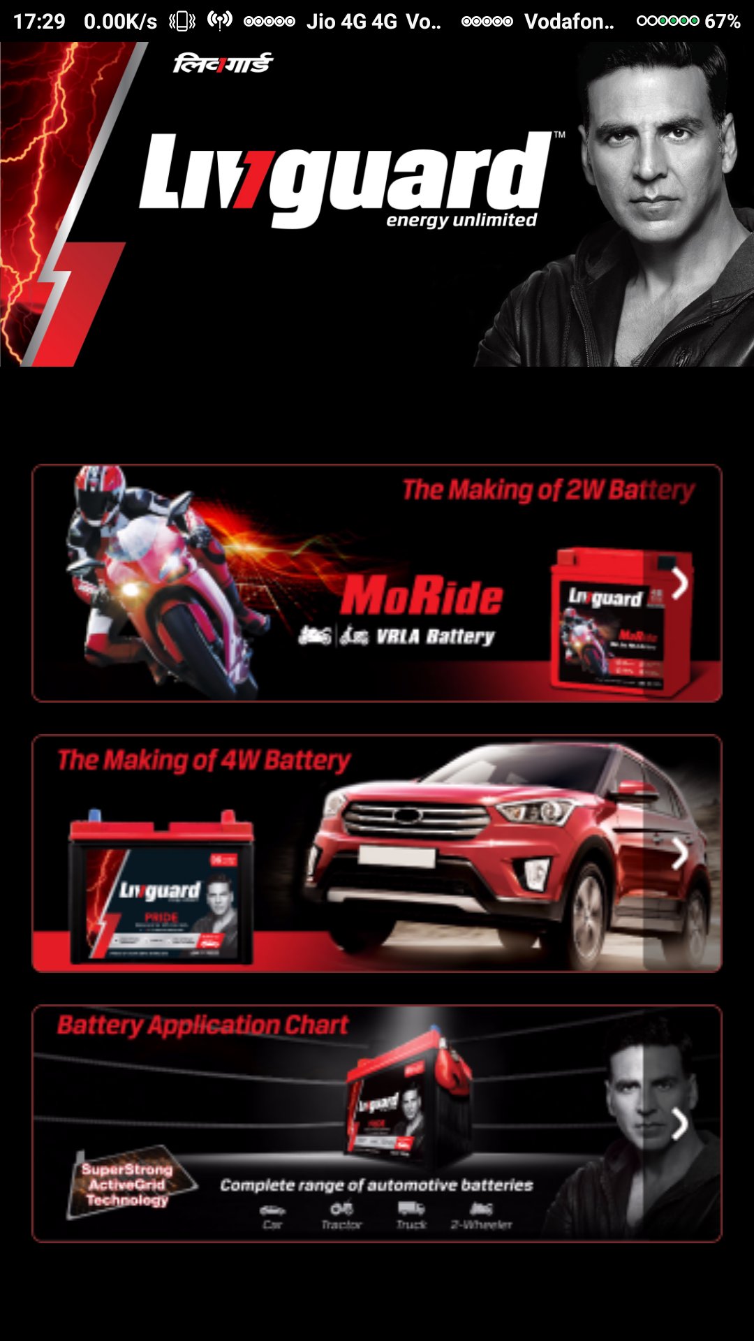 このアプリは、 Livguardの 2 輪および 4 輪用バッテリーの作成を紹介します。