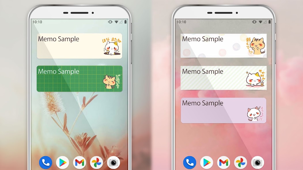 このアプリケーションはホーム画面用のウィジェットであり、パーソナライズを楽しむことができます。ウィジェットの追加メニューが表示されるまで、ホーム画面を押し続けます。ウィジェットのリストから「スティッキーノートカンサイキャッツ」を選択してください。