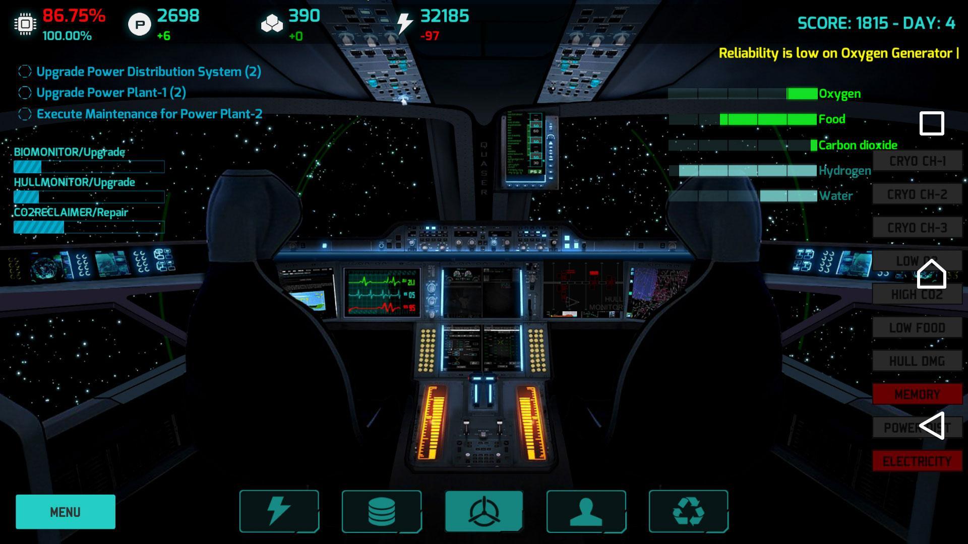 あなたは、このリソース管理ゲームのSpaceship Quaserのコマンドモジュールパイロットです。故障を増やすと乗組員の酸素と電源が脅かされると、クラフトがミッションの途中になるまで、すべてがスムーズに進みます。