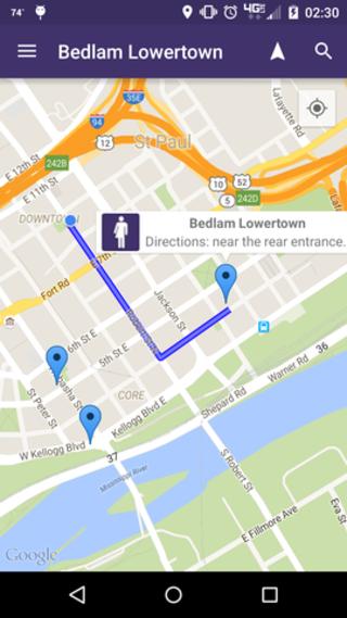 - マップピンをタップして、トイレの詳細を確認し、そのトイレの指示を与えます。