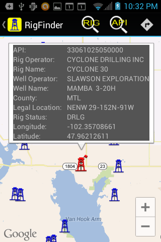 * RigFinderは、ノースダコタ州の石油掘削リグを見つけるマッピングアプリケーションです-Bakken