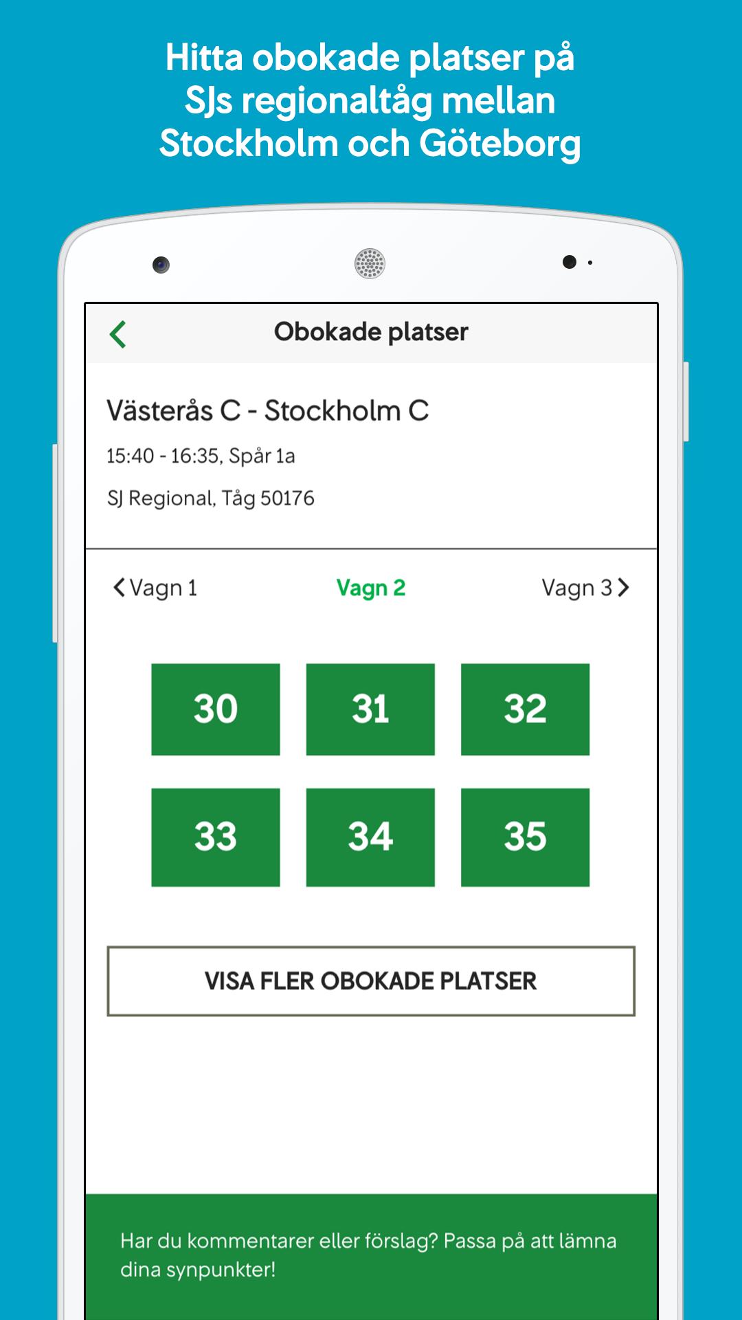 *ヨーテボリの間のSJの地域列車と通勤するときに予約されていない席を見つける - ヴェステルスを介してストックホルム