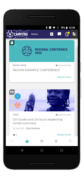 キャンプファイヤーでは、他の女の子のガイドガイドアンドガールスカウティング協会、ガールガイドガイドアンドガールスカウト(WAGGGS)ボランティアの世界協会のメンバーとつながることができます。また、英語、スペイン語、アラビア語のフランス語で対話して、Wagggsプログラム、教育コースに参加し、世界中の他のガールガイドやガールスカウトとベストプラクティスを共有することもできます。