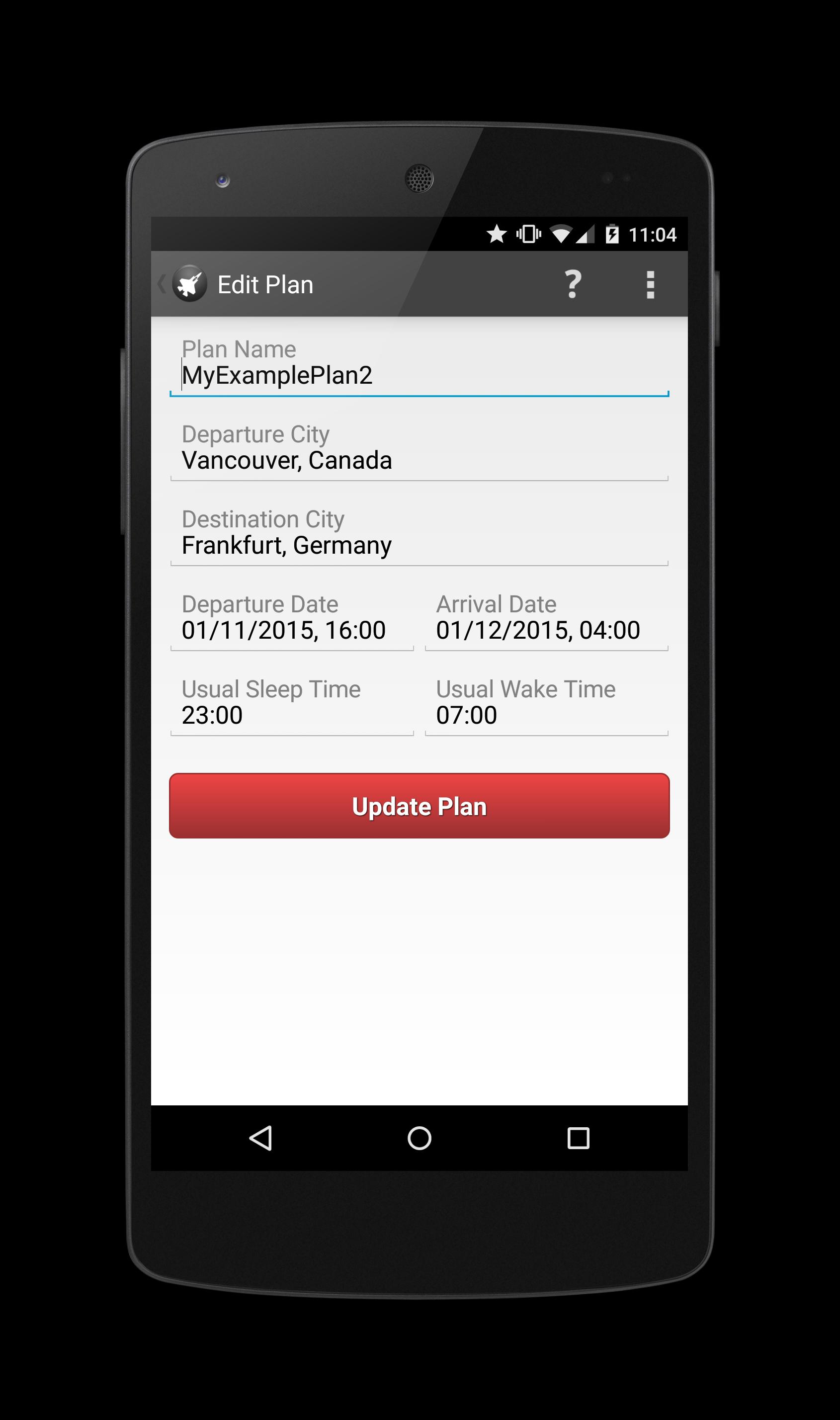 Enter your travel plan details into our application, and it will provide you with accurate jet lag mitigation steps, and tell you how long it will take for your body to adjust to the new timezone. Our algorithm provides a customized schedule for you to follow, and can even add your customized plan to your calendar.