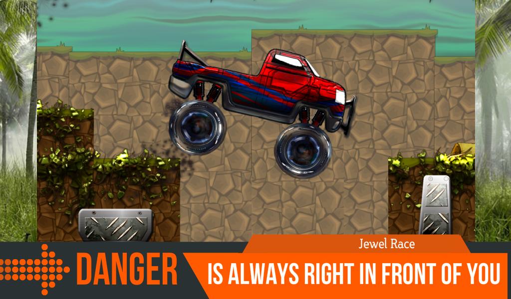 Collect gems in an inaccessible jungle. Load them on the truck and drive towards the goal.