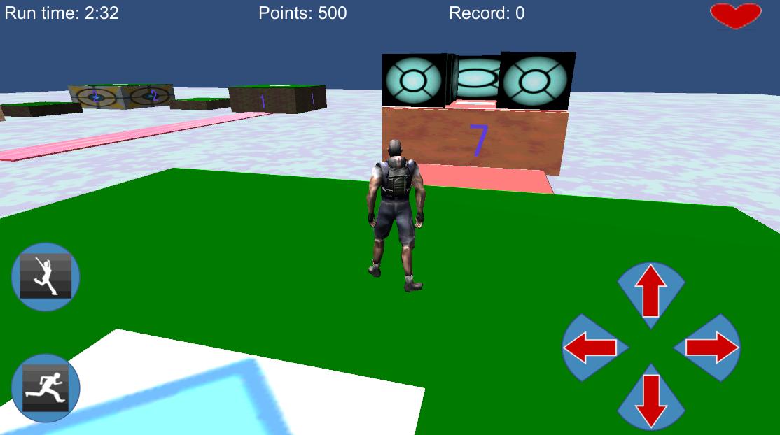 To walk use the up/down/left/right arrows, to jump use the jump icon. To run use the up/down/left/right arrows while touching the run icon. To stop the game at any time, touch the hearts at the top right.