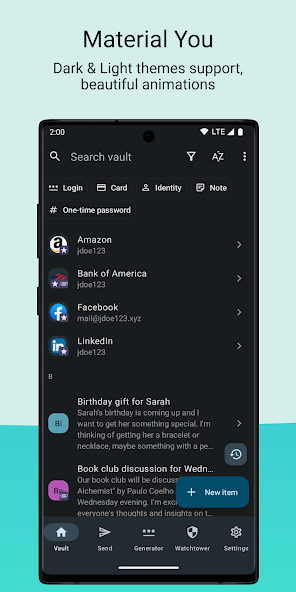 • A watchtower that finds items with Reused passwords, Inactive two factor authentication, Unsecure Websites as well as Duplicate, Incomplete and Expiring items.