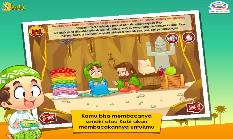 Kabi again present to accompany your child enjoy the story of Prophet Ibrahim Islamic. The story of Prophet Ibrahim is a children's book app designed specifically for children with an interactive display with visually appealing designs that appeal to kids.