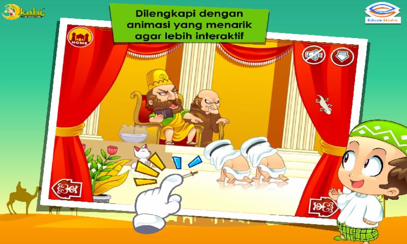 KABI ™ is owned BRAND Educa Studio's interactive children's storybook app. The material is appointed specifically for the Islamic story of the Quran from the Prophet Adam to Prophet Muhammad, Fabel animal stories, Friend, History of the Struggle, Motivation and Inspiration Islam Mutiara. Hopefully, through this application Muslims can take the wisdom and example are hidden so that it becomes a lesson and correction together. This application is produced by Educa Studio ™, application developers and educational games. All illustrations and drawings in this application is purely for illustrative purposes only. That children are easier to understand. But of course, the Prophets, Apostles and Companions will not be represented in human form.