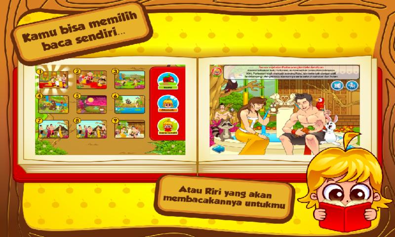 Riri는 전 세계의 이야기와 우화뿐만 아니라 인도네시아의 주제를 가진 대화식 어린이 도서 시리즈입니다. 이 모든 민속과 동화는 대화식으로 포장되어 인도네시아의 뉘앙스와 함께 제공됩니다. 이 어린이 책은 나레이션과 애니메이션을 통해 자동으로 읽을 수없는 어린이가 사용할 수 있습니다. 읽을 수있는 어린이의 경우 읽기 단독 모드를 사용할 수 있습니다. 대화식 어린이 스토리 북 외에도 각 시리즈는 색상, 숫자, 수리력 등으로 교육하는 어린이를위한 교육 게임으로 제공됩니다.