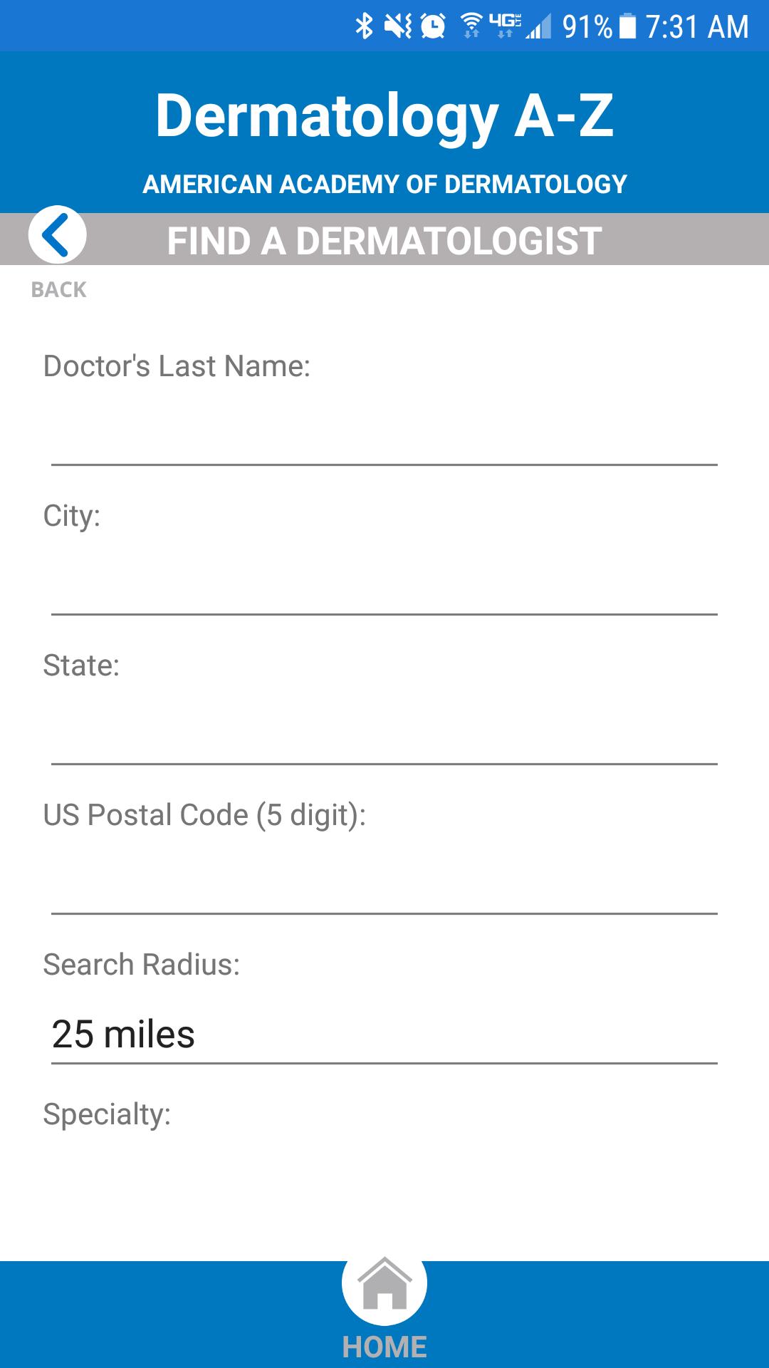 • 해당 지역의 피부과 의사에게 집이나 멀리 접근하기위한 스마트 폰 GPS 시스템과 함께 피부과 전문의 (TM)를 찾는 링크.
