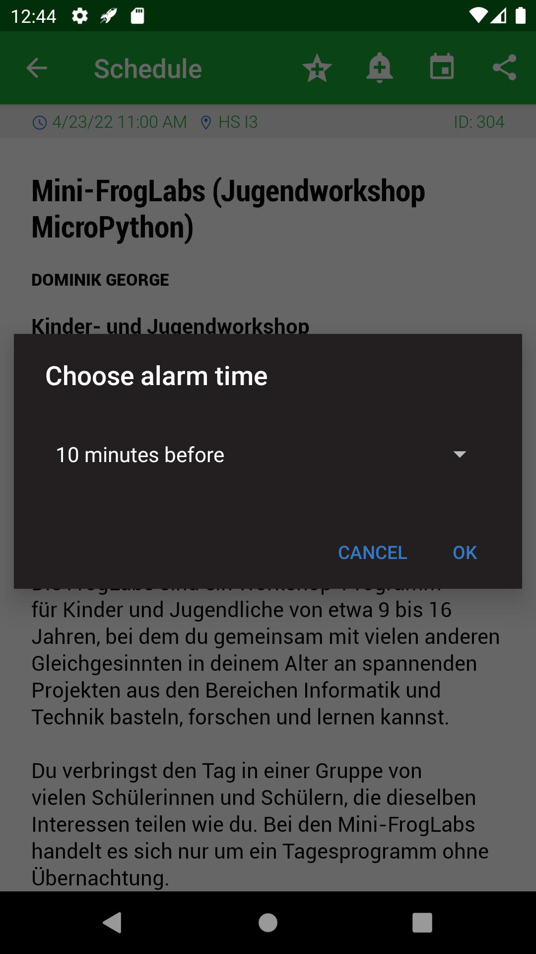 ✓ 이벤트의 자세한 설명 (스피커 이름, 시작 시간, 객실 이름, 링크, ...) 읽기
