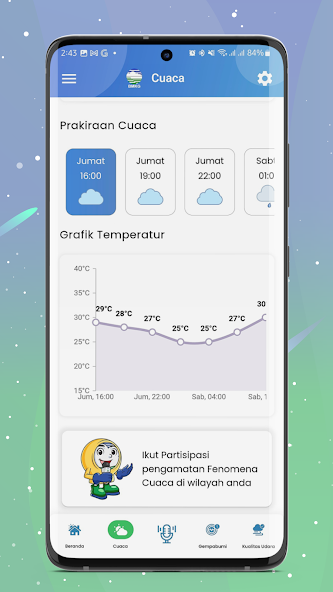 인도네시아에서 발생한 날씨, 기후, 대기 질 및 지진 정보. 이 모바일 애플리케이션은 공식적으로 기상학, 기후학 및 지구 물리학 기관 (BMKG)에 의해 발표되었습니다.