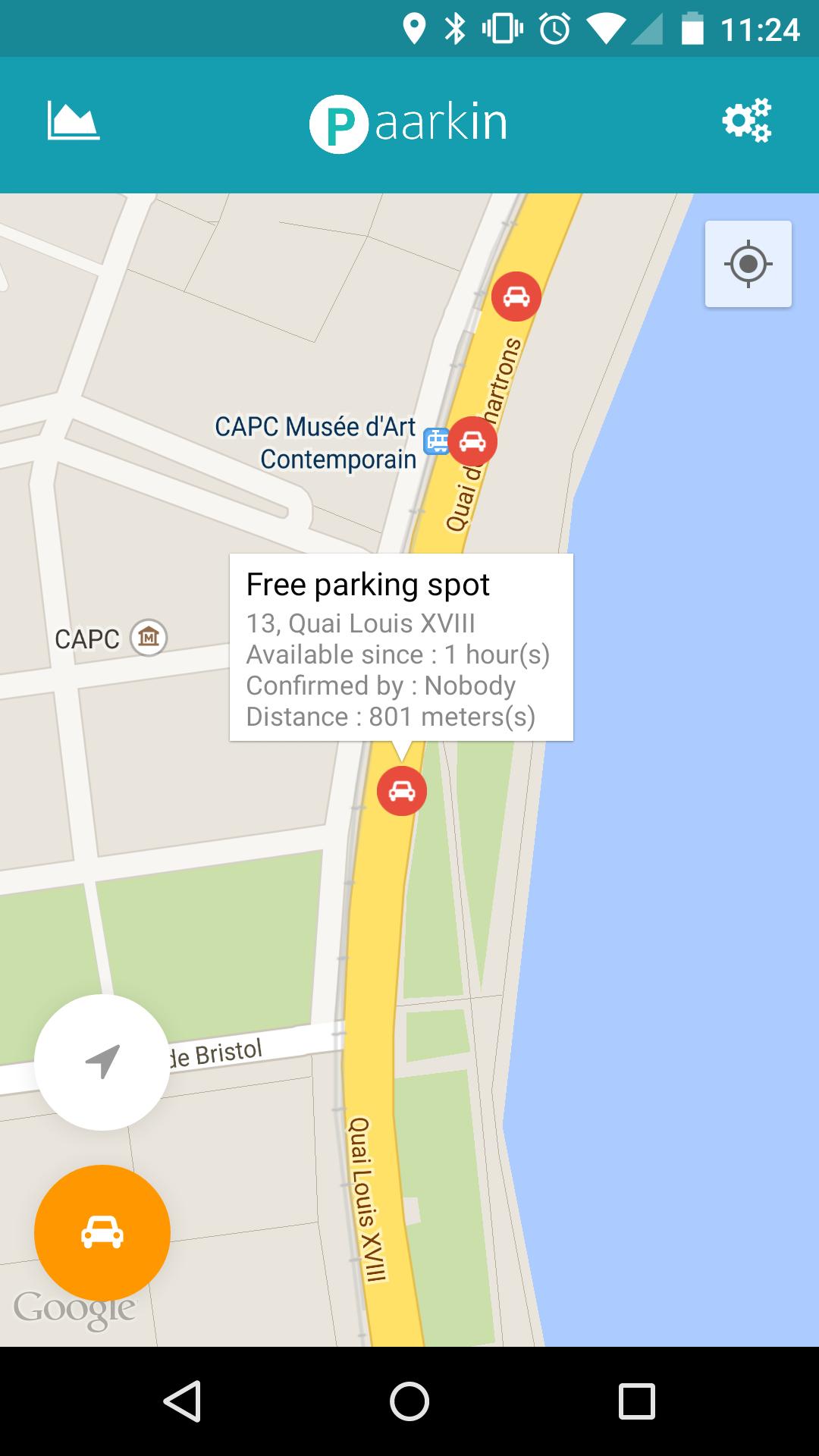 다른 사용자가 신호하는 실시간 무료 주차 장소로 볼 수있는 모바일 앱.