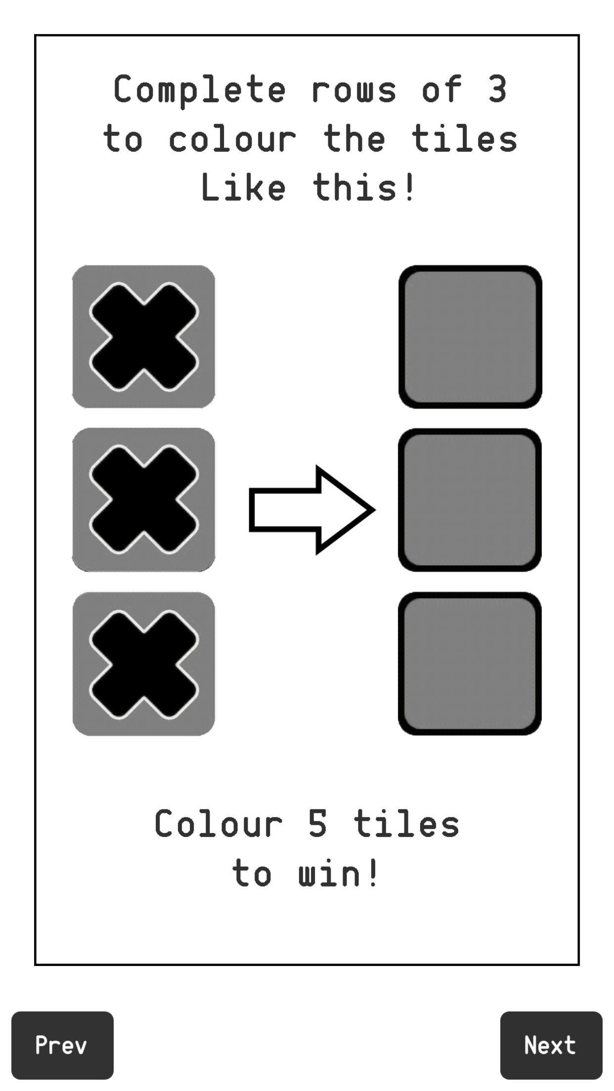 Tic-Tac-Toe와 Reverse의 혼합! 타일을 색칠하기 위해 3 개의 줄을 완성하십시오. 경기에서 승리하기 위해 총 5 개의 타일을 색칠하십시오!