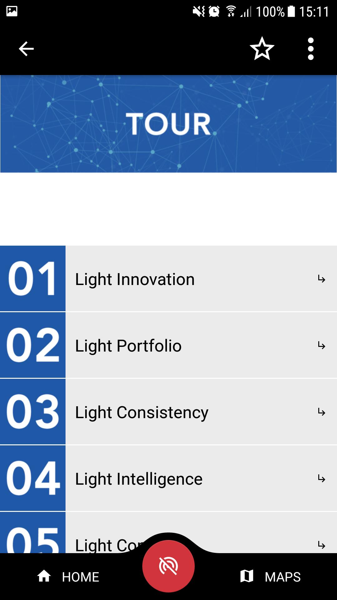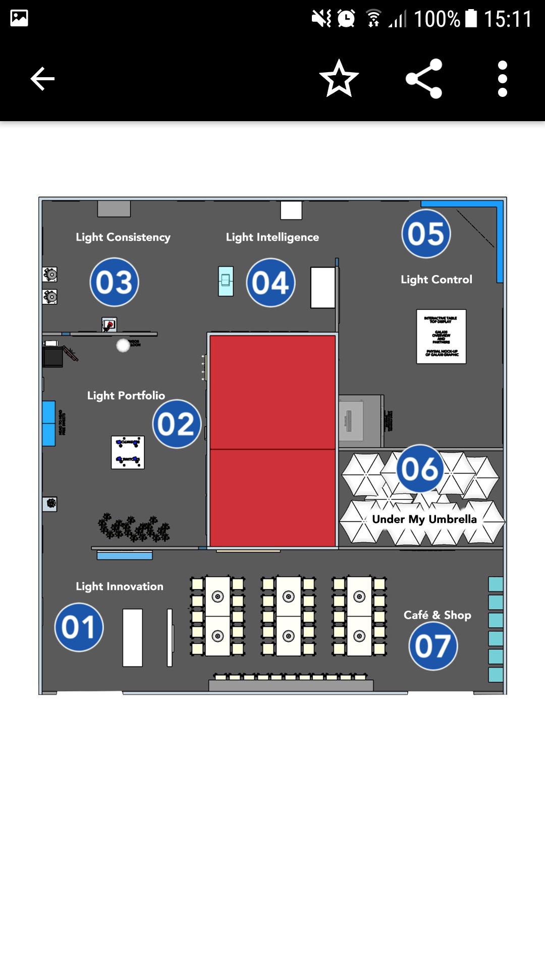 Bluetooth Beacons의 범위 내에 들어 오면 앱의 스탠드 컨텐츠를 주변으로 이동하면 자동으로 트리거됩니다. 조명 예제를 비교하는 '헤드 투 헤드 (Head to Heads)'에서 투표 할 수 있으며 일부 전시회와 상호 작용할 수도 있습니다.