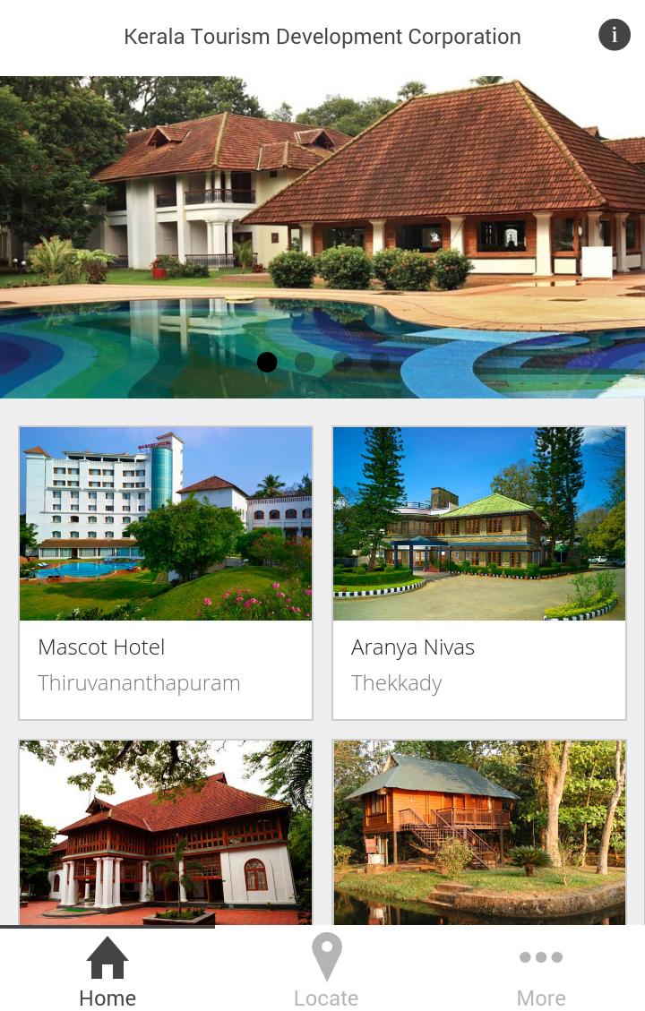 KTDC APP is designed with the interest of being a tourist guide to the travellers and tourists visiting Kerala. The app will give you clear descriptions and images of the various hotels and resorts maintained by KTDC for you. The properties that currently included in this version of the app are: