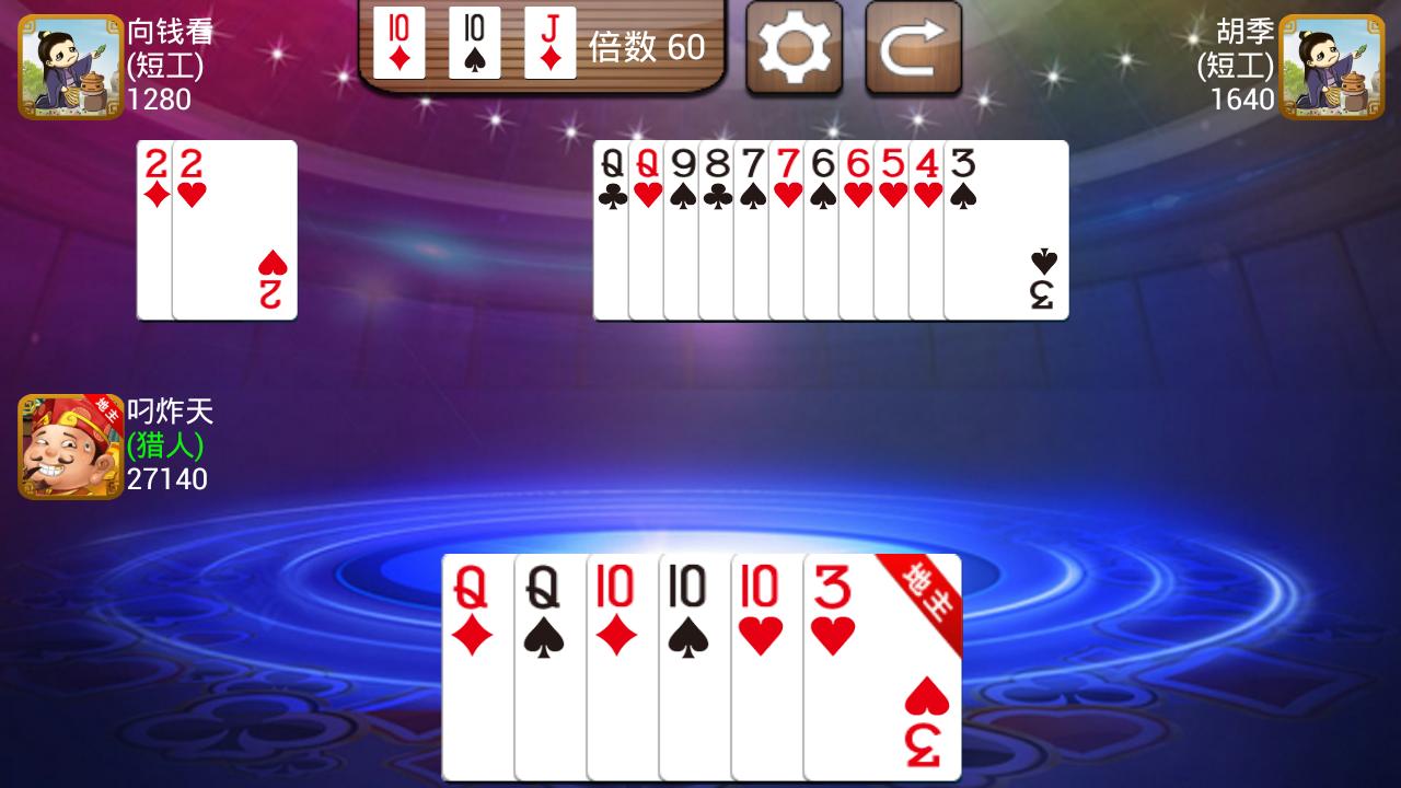 This Landlords is one very popular card game. There are three players in the card game,and they use one deck of cards. Successful bidders for the landlord, otherwise farmers. Two farmers together to "fight" landlord. The game finished either first-out cards is the winner.