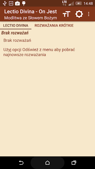 The application is an electronic version of the Lectio Divina reflections, prepared since 2011 in printed form for the parishioners of Our Lady of Sorrows in Wrocław - Strachocin by members of the "On Jest" community of the Light - Life Movement.