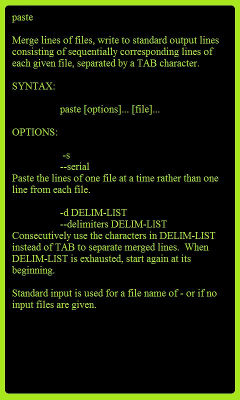 This app provides all the regular bash commands for Linux Shell as well providing Syntax, Descriptions of