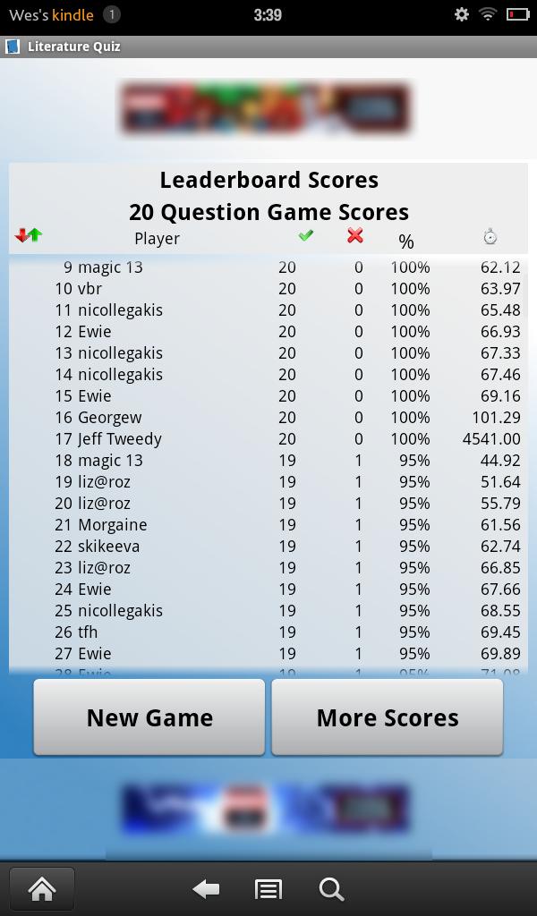 Literature Quiz is a trivia game that will test your knowledge of classic books and authors. A few questions are also included for modern day popular books such as Who Stole My Cheese, Twilight and Harry Potter. Classic books covered include: A Tale Of Two Cities, Moby Dick, The Lord of the Rings, Pride & Prejudice, Robinson Crusoe, To Kill a Mockingbird, Wuthering Heights, Frankenstein, Dracula, The Wind and the Willows, and many more.