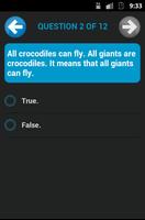 Here you have to determine the formal correctness of a logical conclusion based on a specific statement (or series of statements). The reality does not play any role in this case (it is a bit harder to pass the test, because the content is absurd, but perfectly logical).