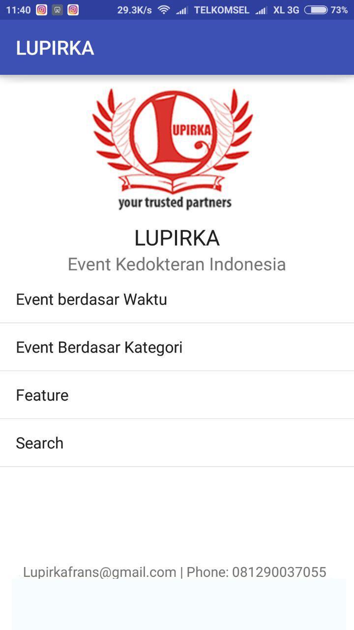 - Changes from the initial lupirka application that only for registration to become a lupirka application that contains information on Indonesian medical events