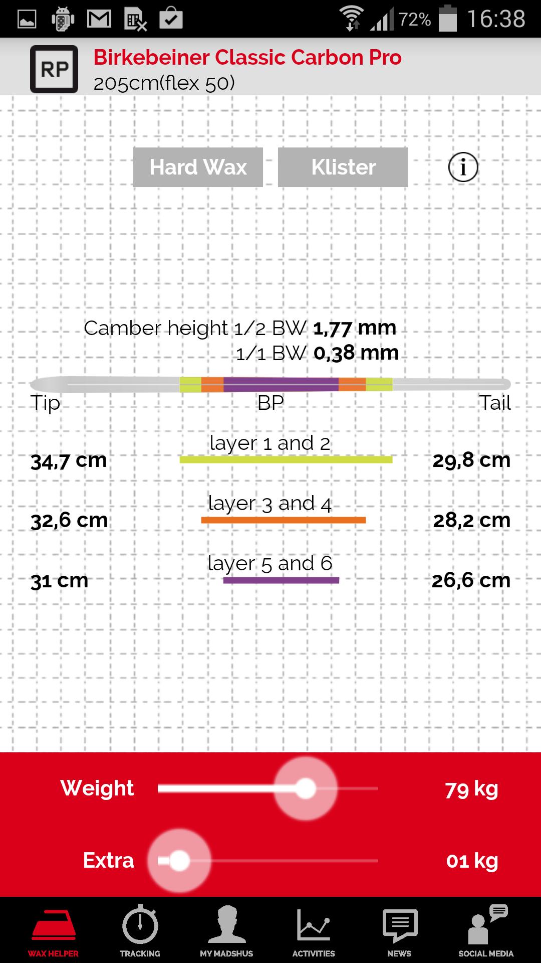 Optimize – Use the Madshus empower App to manage your ski quiver, customize your skis’ wax performance on the fly, and track training results.