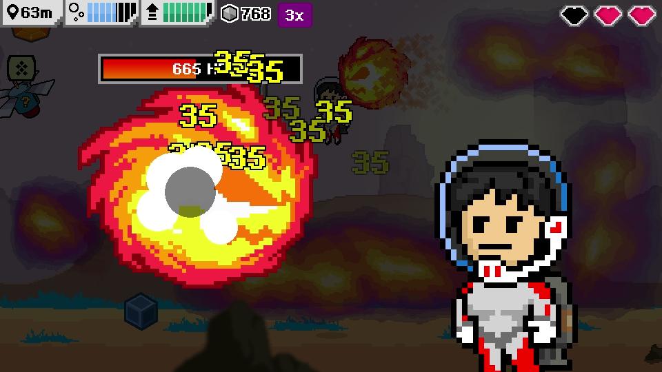 The main focus of the game is to complete your Contract, but it will not be a simple task. Gravity is low, so you must learn to control you boost pack to properly and evade the obstacles. You air is limited, and each planet is full of dangers, but you have a job to do. You can always upgrade you equipment and improve your odds… for a price.
