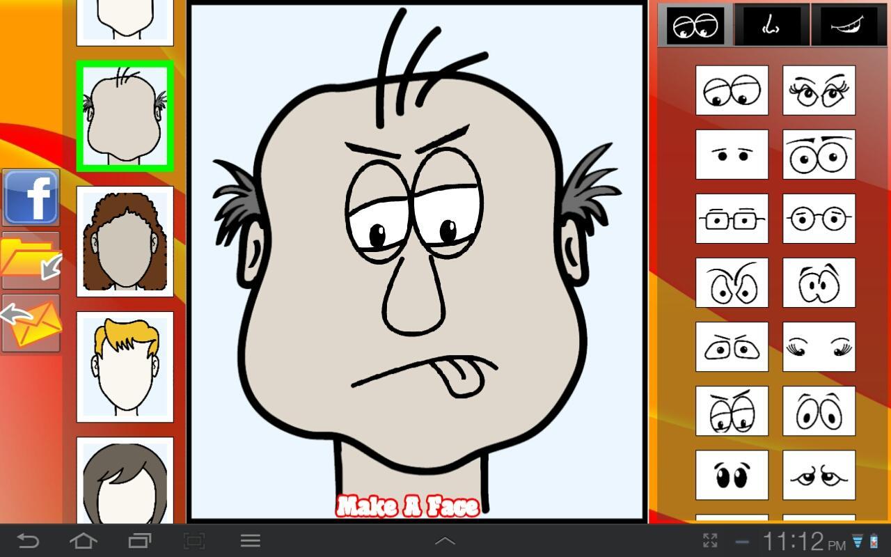 2- Make a face by choosing eyes, nose and mouth from the right scroller.