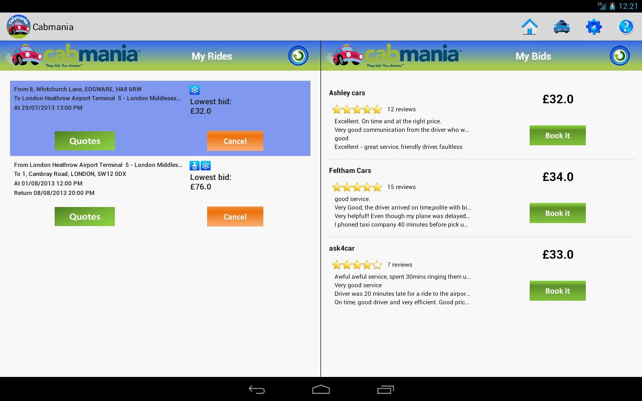 Put your job for a bid, let Manchester cabbies bid on your ride and get the best possible price.