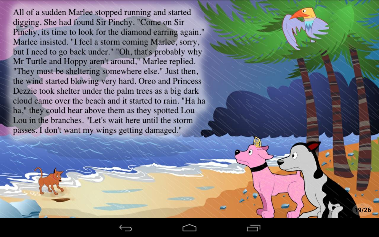 Marlee is a rescue dog, living in the beautiful Caribbean Island of Grand Cayman. Her friends Oreo, Princess Dezzie and Bossy Bella live on the same beach as Marlee. One day they meet a lady who has lost her precious diamond earring.