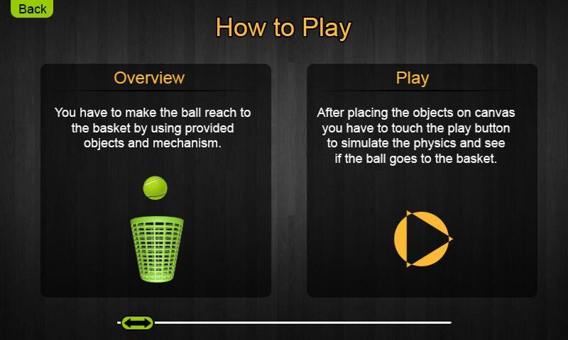 Creativity is essential in the game play Mechanism. You have to plan a creative structure to move the ball to the basket. For understanding the game play, tutorial and documented helps are also given.