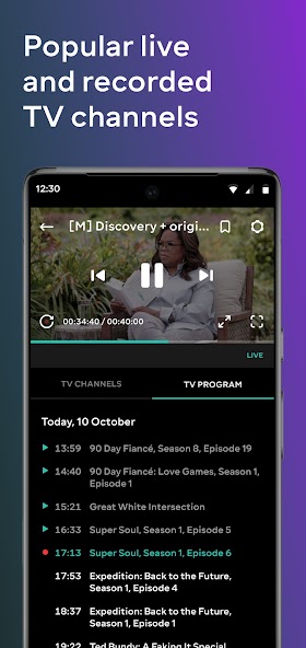 ⏯️TV control. Pause live TV shows and rewind commercials while you watch recorded broadcasts. Programs are stored for a few days, so you can watch them later in the record.