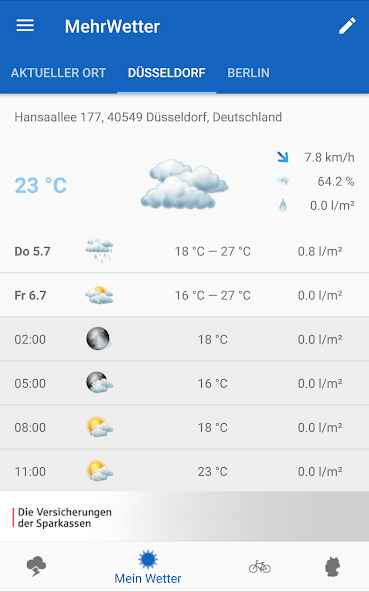“MehrWetter” is a helpful service app for transmitting weather information within Germany and Europe. The app offers location-based weather forecasts including severe weather news, overview information on German and European weather as well as weather-related notifications for leisure activities.
