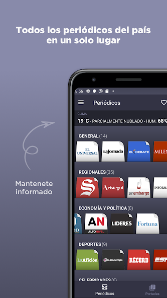 The logos and content of each newspaper or magazine are the exclusive property of the same. Mexican Newspapers only use them in order to be recognized by readers who use the application, and access the web pages of each newspaper.