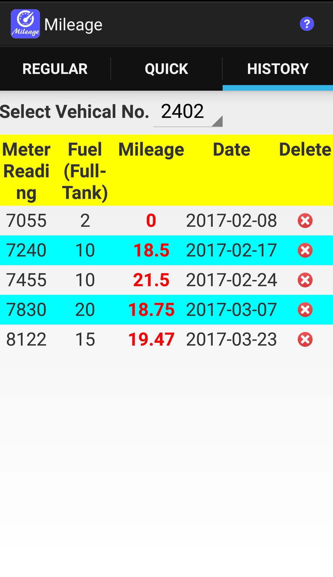 6. It stores all your records of mileage,fuel,odometer reading and date of fill ups in history.