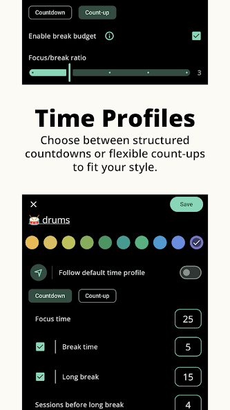 Organize tasks with colored labels and custom time profiles to stay on track.