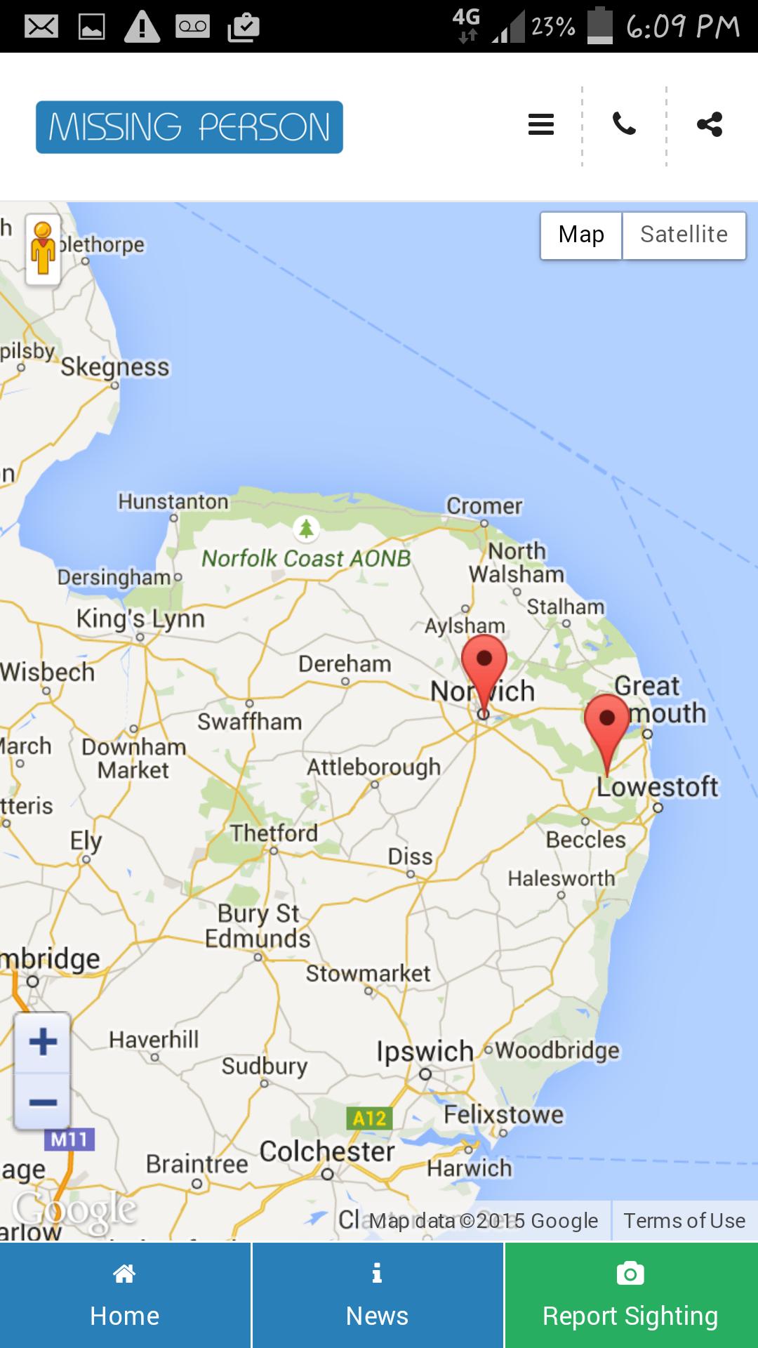 The Missing Person app has been created to help raise awareness and provide a means of report sightings of missing people in the UK and Europe.