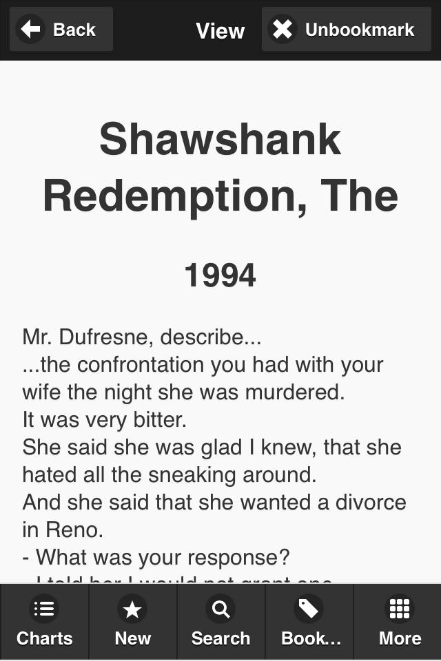 Need a transcript not in the database? Please use the "Request a Movie Transcript" option in the "More" menu and it will be added A.S.A.P.