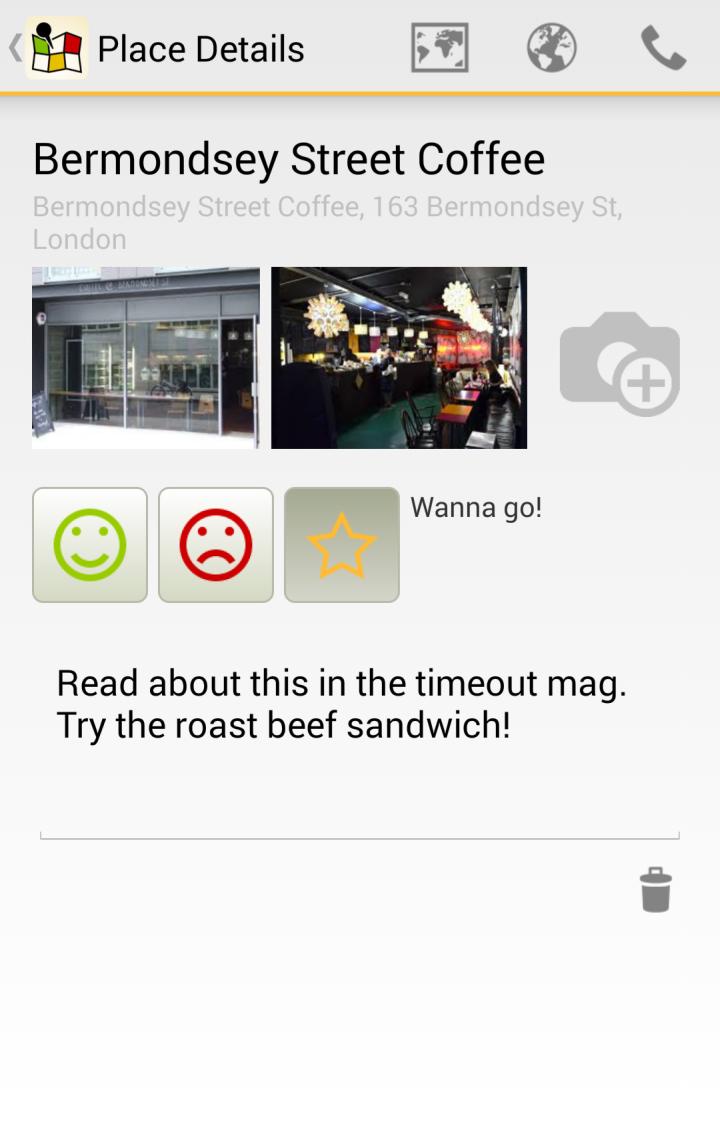 You can mark a place as liked, disliked, or wanna go! This way, you can instantly see why you had saved it in the first place.