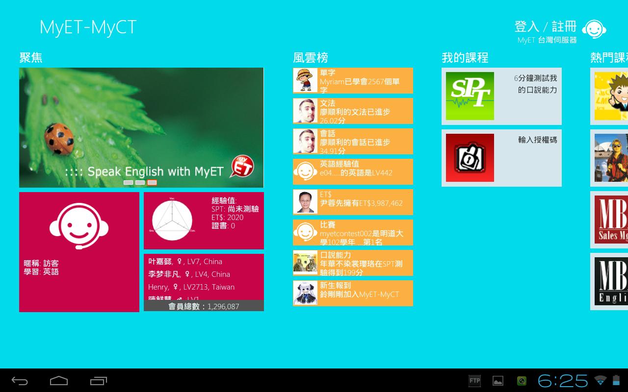 MyET is like a personal tutor that can help you learn English through speaking practice. MyET's unique and award-winning technology, "Automatic Speech Analysis System" (ASAS©), can analyze your speech on pronunciation, pitch, timing and emphasis, and even pinpoint problems to individual sounds. After you speak, you receive a score and specific feedback on how to improve. Whether you're a beginner or advanced learner, MyET is like a one-on-one tutor who can make speaking a comfortable experience!