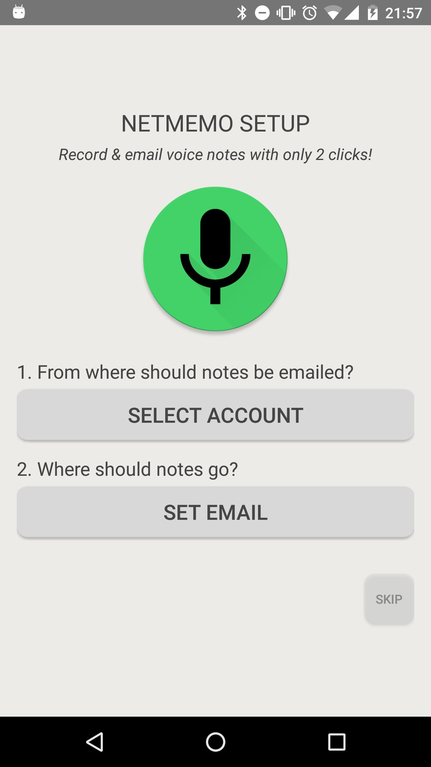 Netmemo is for moments on-the-go when you think of something but don't have time to write it down: start Netmemo, speak and send. The recording is delivered to your inbox, or to any other destination you can reach via email, such as Evernote, Google Drive, Trello and more.