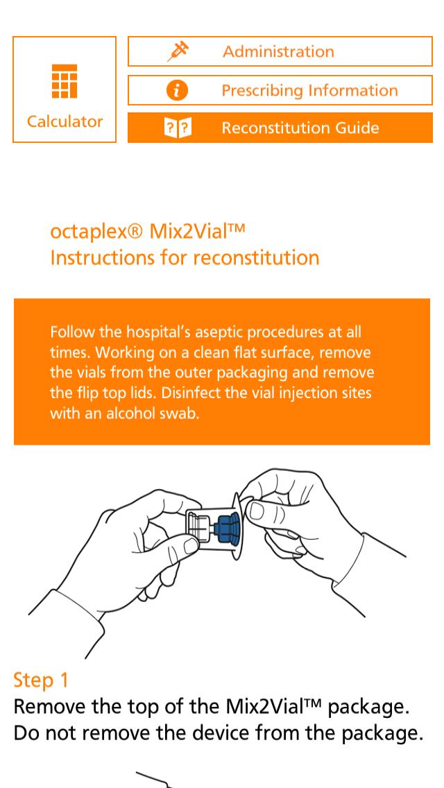 Dosing and reconstitution guide for octaplex (Prothrombin complex concentrate)
